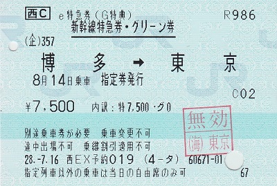 博多 東京 新幹線特急券 グリーン券 E特急券 G特典 紙切れ旅行記